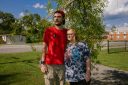 Madison Underwood and her fiancé Adam Queen hold hands at a local park.
