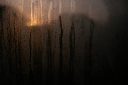 Humidity and dew on the window of a Waffle House as the sun rises in Atlanta July 8, 2022.