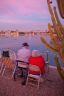 Ernie and Jeanie Thompson await the holiday boat parade at the Holiday Around the World Celebration in Sun City, Az at the Lakeview Recreation Center.