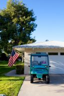 A golf cart advertised for sale sits in a driveway in Sun City, Arizona. Golf carts are a common mode of transportation in Sun City, Arizona