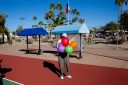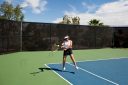 Sheila McMillan, 72, plays doubles tennis against friends in Sun City Shadow Hills, a 55 and older retirement community in Indio, California.They play tennis two or three times a week, if not more.
