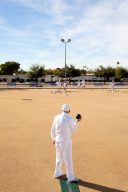 Jerry Hobbs, 82, lawn bowls outside of the Bell Recreation Center in Sun City, Arizona. The lawn bowling club is one of more than 120 clubs in the city of active retirees.