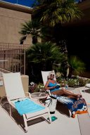 5-year-resident Sunny Collins suns by the pool at Sun City Palm Desert.