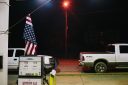 Trucks parked outside of Mustang Oil, a gas station, convenience store, and one of the handful of restaurants in town.