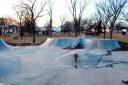 Tate Johnson, 10, rides his scooter with friends at the Williston Skatepark in Williston, North Dakota. Williston is currently experiencing an influx of people relocating there for the town’s third oil boom.