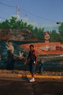 Karen Snyder, 47, enjoys a cigarette during a break from the nearby mental health facility she works at in downtown Braddock, Pennsylvania. Karen moved back to Braddock from California a few years ago. Her mother grew up in Braddock and her great grandfather worked at the steel mill. “I like Braddock,” she said. “I wis it could come back to life. They just knocked four buildings down.”