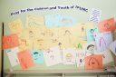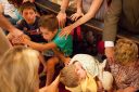 The congregation lays hands on each other as they pray with the children and teachers the day before the first day of school at Inman Park United Methodist Church in Atlanta.