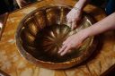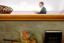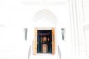 People dip their fingers in holy water after mass at Cathedral of Christ the King in Atlanta, Georgia.
